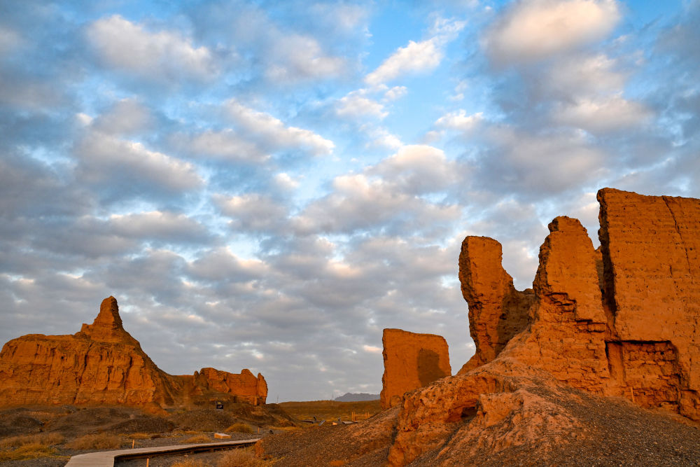 距離庫車西北十余公里處,克孜爾尕哈烽燧巍然屹立,這座始建于漢代的軍事設施,歷經2000多年的風雨,至今雄姿猶存,2014年被列為世界文化遺產。作為漢代長城防御體系的重要組成部分,它見證了絲綢之路的繁榮與變遷。