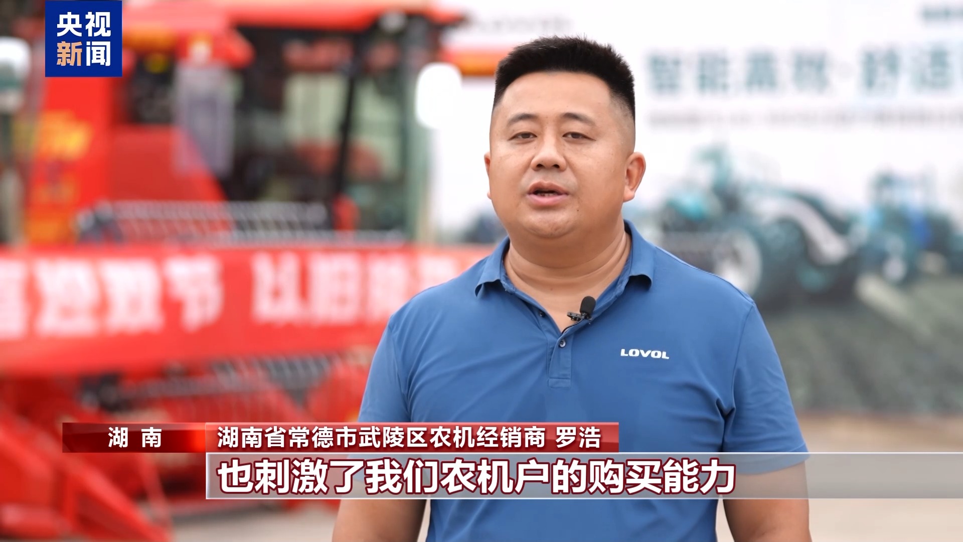 湖南省常德市武陵區農機經銷商 羅浩:以舊換新政策有效地促進了我們農機的流通,也刺激了農機戶的購買能力。相比于往年,銷售提升了30%。