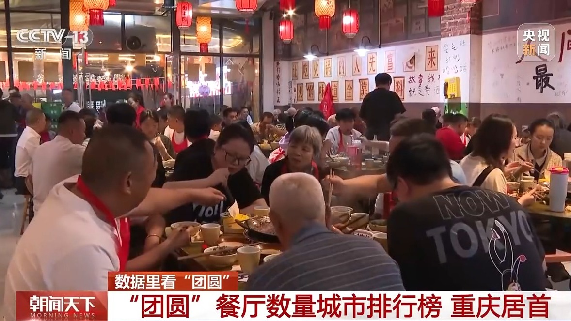 地圖導航軟件上,無數條通往“團圓”的路線被點亮。高德掃街榜數據顯示,在“團圓”餐廳方面,名字帶有“團圓”的餐廳城市排名中,重慶數量居首,溫州、益陽、南陽等緊隨其后。