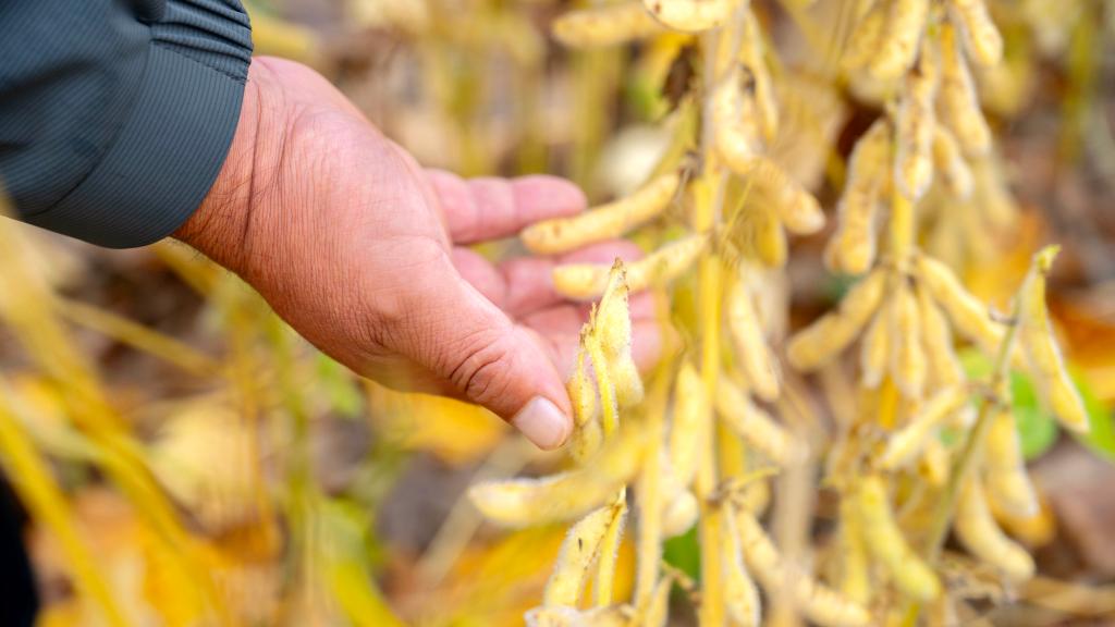 秋日清晨,雨絲細密。沒等雨停,山東省濟寧市嘉祥縣紙坊鎮大豆種植戶宋新萌就深一腳淺一腳地蹚進田里清理溝渠:“地里積水不等人,得趕緊疏通溝渠排出去。”