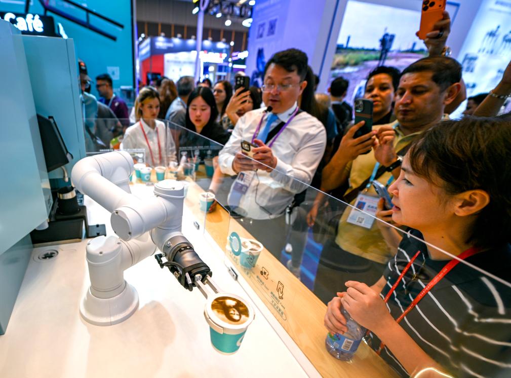 不僅展品吸睛,數據也顯示出中國機器人產業的快速成長。工信部統計顯示,去年,中國機器人產業營業收入近2400億元。今年上半年,中國機器人產業營業收入同比增長27.8%,工業機器人產量達37萬套。機器人產業在營收和應用方面均呈現強勁增長勢頭。