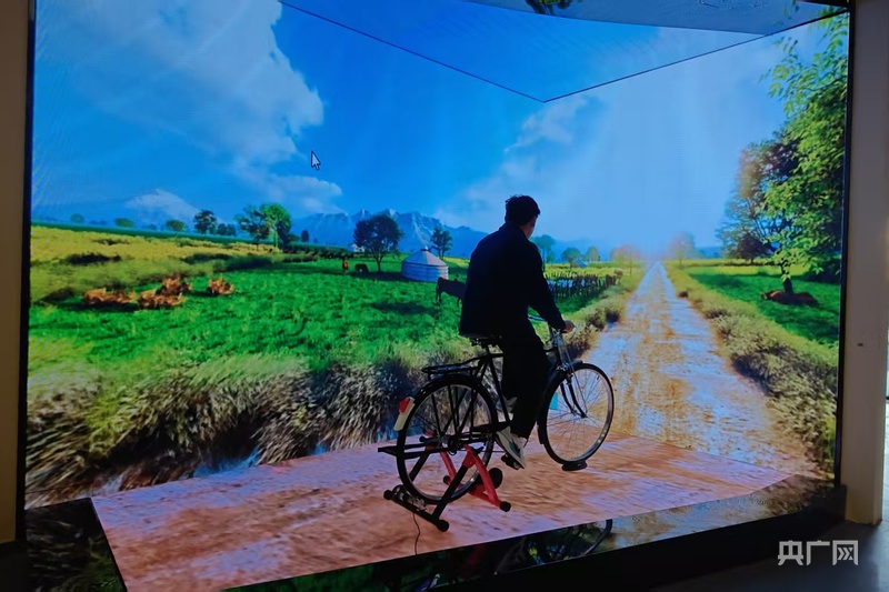 游客在“軍墾之星”數(shù)創(chuàng)基地沉浸式體驗兵團變遷 (央廣網(wǎng)記者郭璁悅 攝)