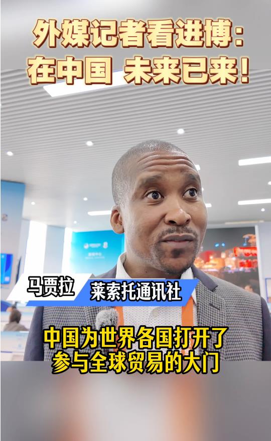 11月5日上午,第八屆中國國際進口博覽會(CIIE)在上海開幕。今年進博會的記者整體報名規模和外媒報名規模均超過上屆,在國家會展中心(上海)的進博會新聞中心內,中外記者聚焦進博會開幕式。來自萊索托通訊社的馬賈拉(Majara Rethabile)在接受國際在線專訪時表示,中國的現代化發展水平令他感到震撼,中國人民已然“生活在未來”。他高度贊賞中國通過舉辦進博會等活動向世界打開大門,幫助其他發展中國家融入全球貿易。馬賈拉稱,他希望此行能夠將更多中國經驗帶回萊索托。