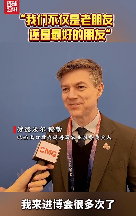 巴西出口投資促進局農(nóng)業(yè)事務(wù)負責人勞德米爾·穆勒接受總臺環(huán)球資訊廣播記者采訪時表示,巴西每年都積極參與進博會,不僅是進博會的老朋友,更是最好的朋友。