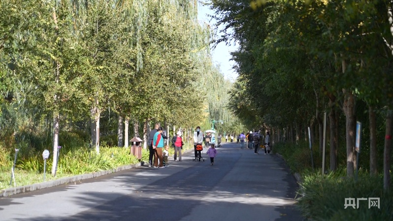 市民在濕地公園散步 (央廣網記者丁安 攝)