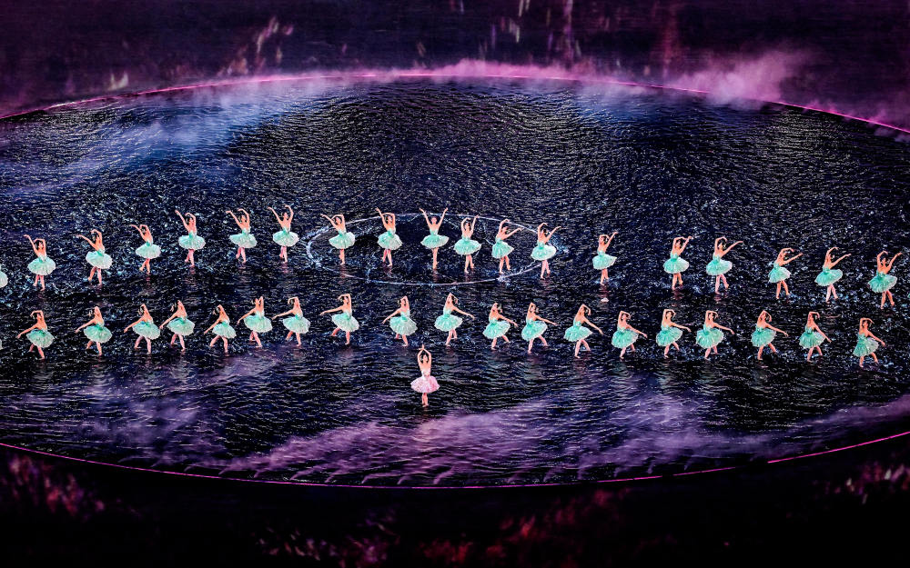 郎昆介紹,開幕式在空間敘事、藝術表達等方面都體現(xiàn)了三地文化交融。主舞臺直觀呈現(xiàn)“同心圓”造型,環(huán)形舞臺周邊是廣闊的水面,運用前沿的“虛實結合”技術,讓珠江、維多利亞港、伶仃洋的水波在場地中交匯奔流。這不僅是地理水系的相連,更是三地同源共流的文化血脈與手足親情的象征。