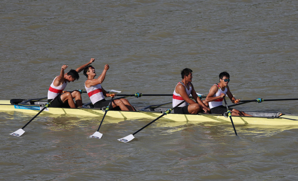 賽艇男子四人雙槳決賽中,由張自毫、臧哈、張漢文、蔡鵬鵬組成的江蘇隊發揮出色,以4分12秒24的成績率先沖線,戰勝由旺加、母曉龍、劉百順、張全組成的廣東隊。后者是代表中國隊參加今年上海賽艇世錦賽男子四人雙槳項目的原班組合。