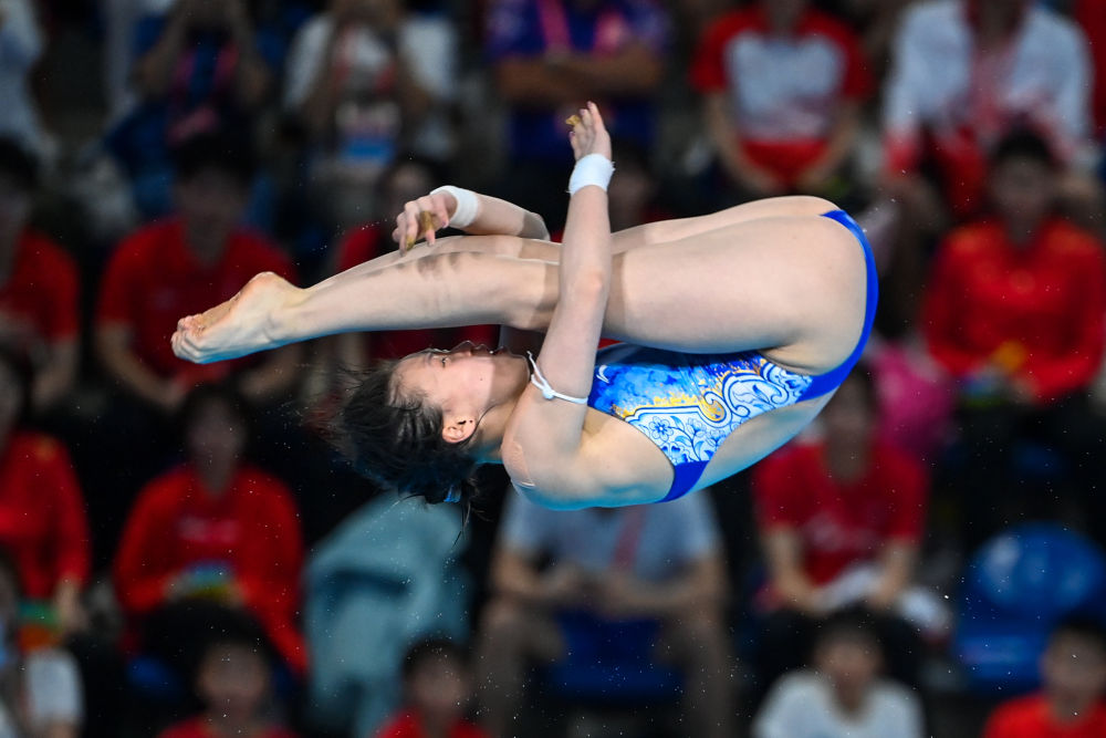 游泳剛剛拉開戰幕,跳水則步入尾聲。王宗源和鄭九源為湖北隊包攬男子3米板金、銀牌,上海隊陳芋汐收獲女子10米臺冠軍。