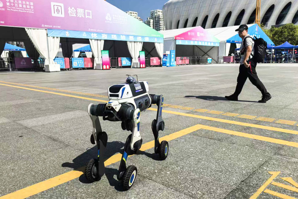 11月15日,深圳警方在場館附近使用“電子狼”警用巡邏機器人。