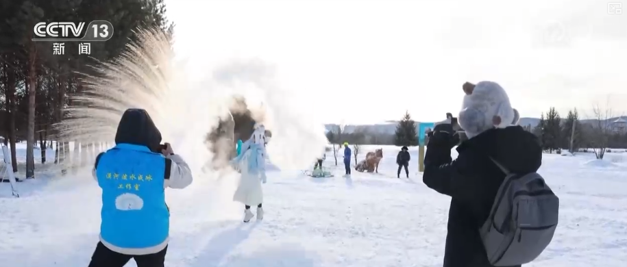 “潑水成冰”一直是北極村最受歡迎的冬季體驗項目之一。為提升體驗感與安全性,漠河近日開設了首家“潑水成冰工作室”,為游客提供特制潑水器具和主題旅拍服務,并有教練現場免費指導。