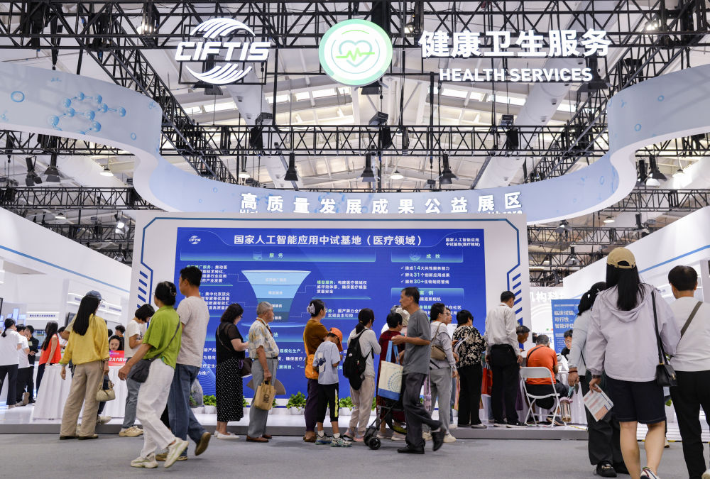 9月14日,人們?cè)?025年服貿(mào)會(huì)健康衛(wèi)生服務(wù)專題展上參觀、體驗(yàn)。(新華社記者 徐欽 攝)