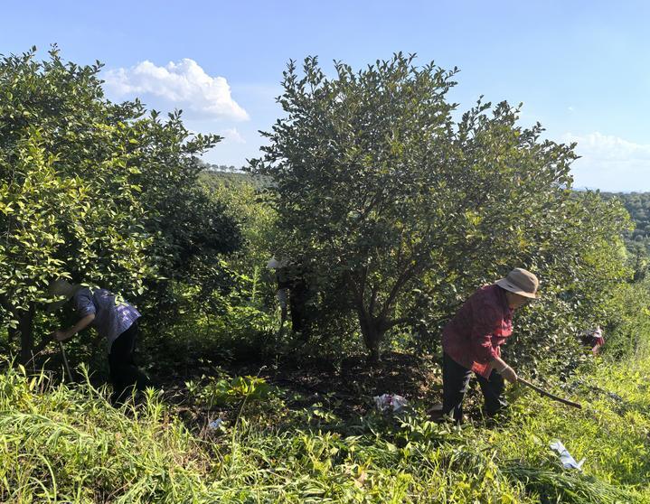 村民在河南省光山縣槐店鄉司馬光油茶園內勞作(2025年7月2日攝)。新華社記者 劉金輝 攝