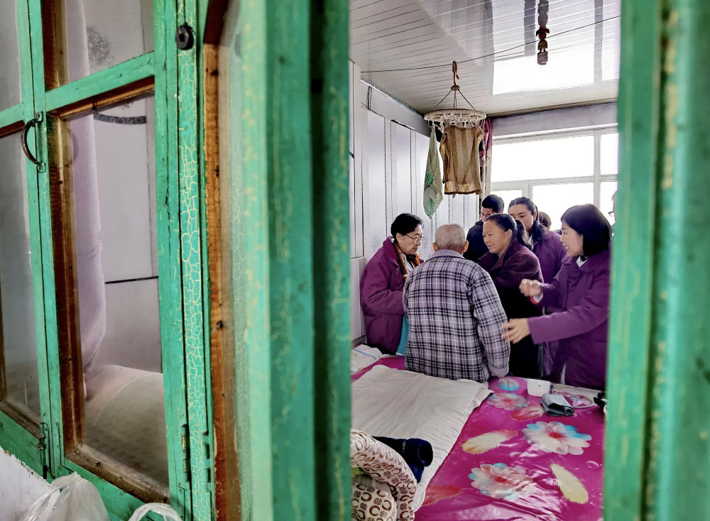 2024年11月26日,87歲的遼寧金秋醫院“菊香愛心團隊”領隊張菊香(左一)冒雪到行動不便的患者家中診治。多年來,數百名熱心公益事業的“菊香愛心團隊”醫務工作者在遼寧的鄉村、街道社區為群眾提供優質醫療服務,先后開展大型義診活動近百次,診治群眾超過6萬人次;舉辦健康科普講座超過60場,受益群眾超過4萬人;培訓鄉村基層醫務人員上千人。