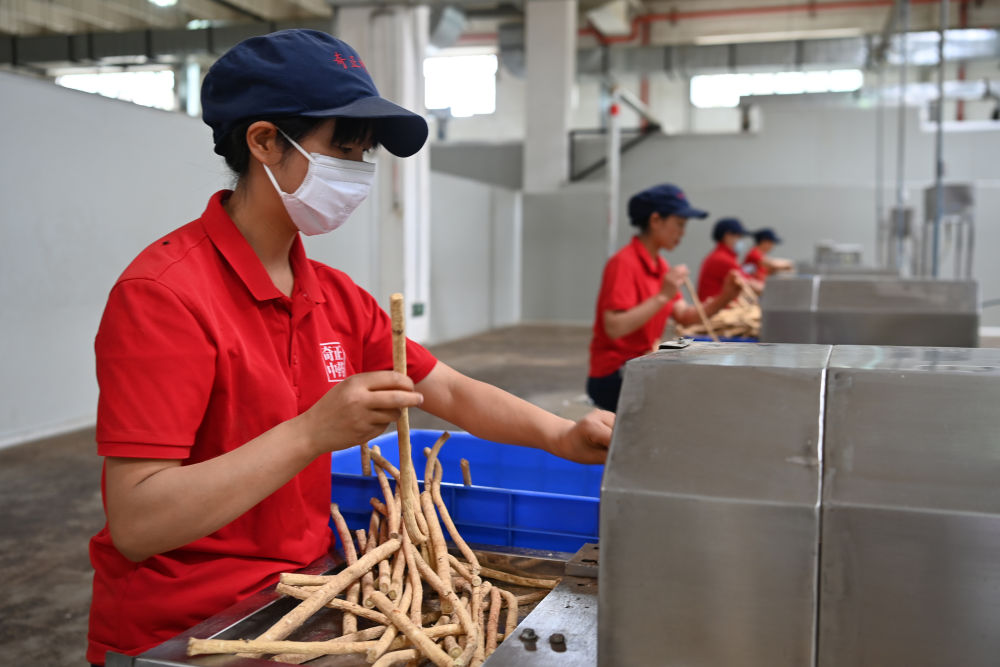 2025年7月8日,工人在江西樟樹市一家中藥企業的