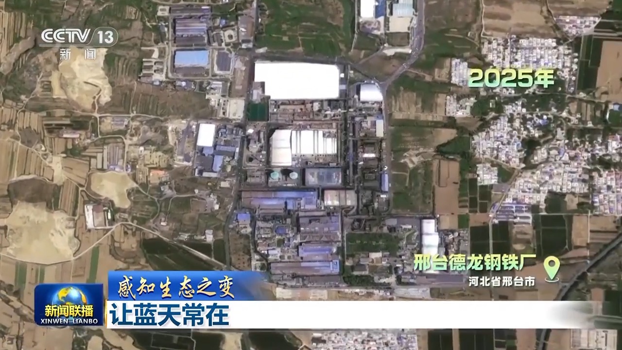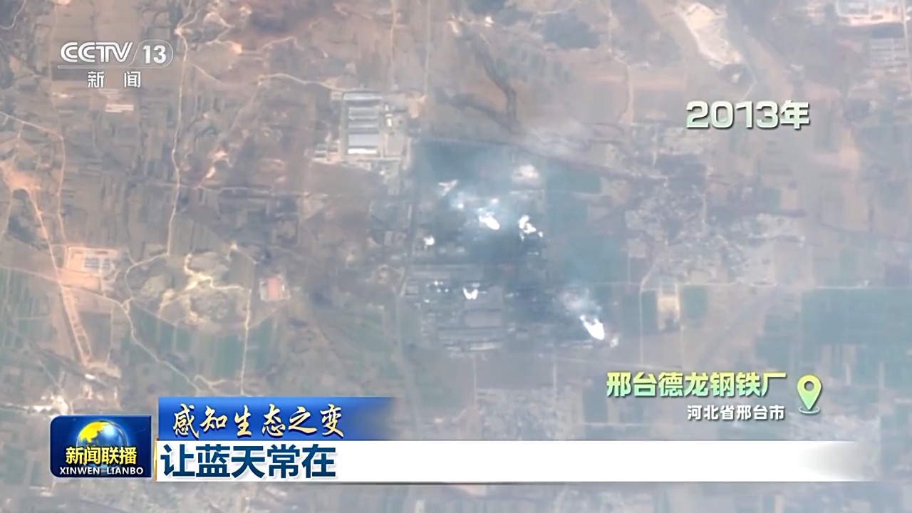 這是當時,環境監測衛星拍到的德龍鋼鐵廠,霧霾最嚴重的時候幾乎看不出廠區輪廓。而如今,卻是清晰可見,綠意蔥蔥。