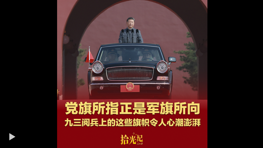 習近平向黨旗、國旗、軍旗行注目禮、劉老莊連沿用著當年的戰旗樣式……九三閱兵上的這些旗幟令人心潮澎湃。