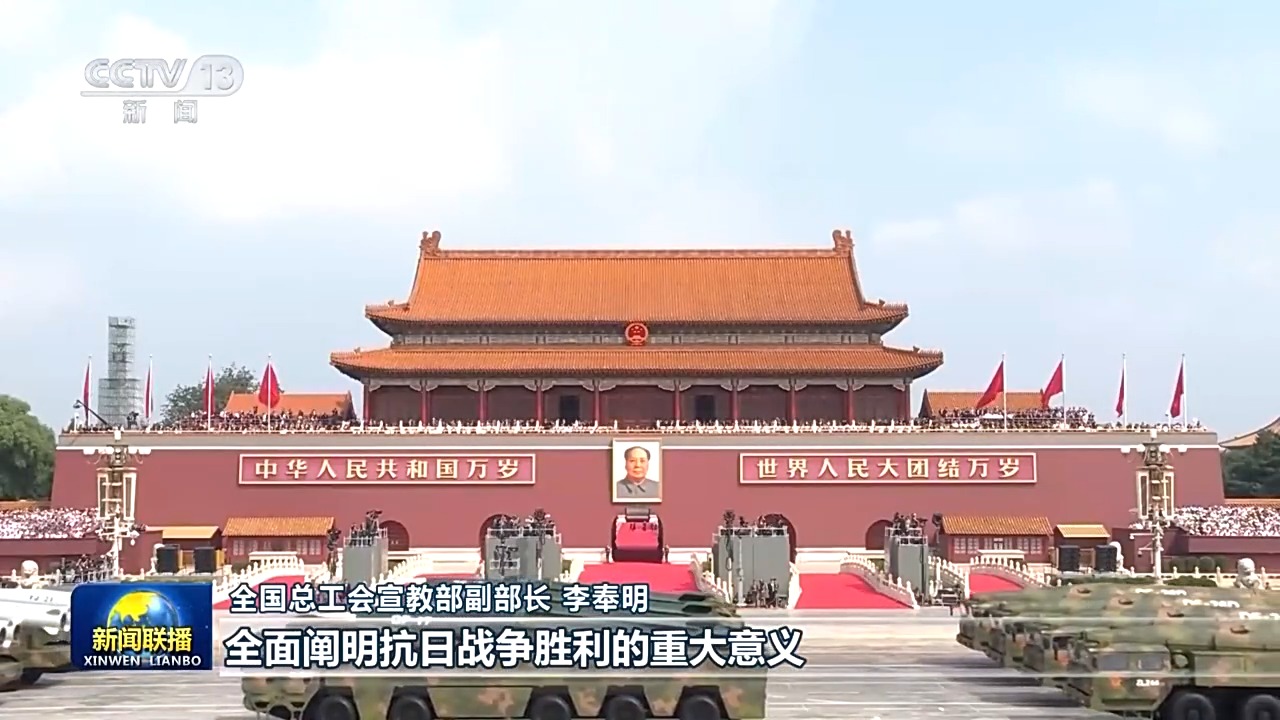 全國總工會宣教部副部長 李奉明:習(xí)近平總書記的重要講話,從全民族、全人類的高度,全面闡明抗日戰(zhàn)爭勝利的重大意義。莊嚴(yán)宣示中國人民維護世界和平與發(fā)展的堅定立場,我們深刻認識到中國共產(chǎn)黨的中流砥柱作用是抗日戰(zhàn)爭勝利的關(guān)鍵。