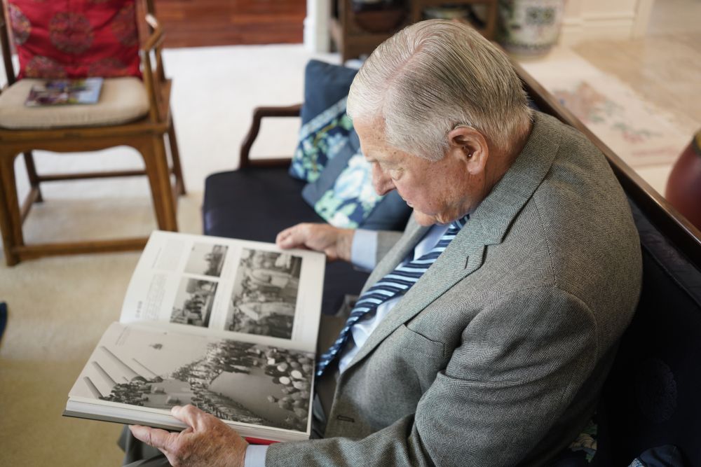 8月11日,史迪威外孫伊斯特布魯克在家中翻看畫冊。新華社記者 吳曉凌 攝