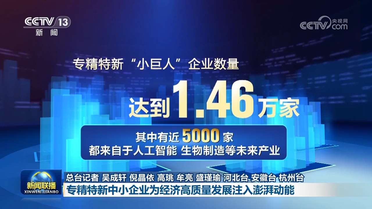 當前,我國已累計培育專精特新中小企業超過14萬家,專精特新“小巨人”企業數量達到1.46萬家,其中有近5000家都來自于人工智能、生物制造等未來產業。1—7月,規模以上工業專精特新“小巨人”企業增加值同比增長8.7%,增速高于全部規模以上工業2.4個百分點。
