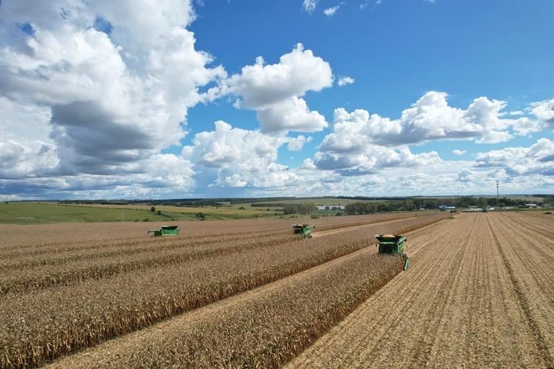 2025年9月10日,在北大荒集團黑龍江建設農場有限公司第三管理區,大馬力機車在進行玉米搶收作業。