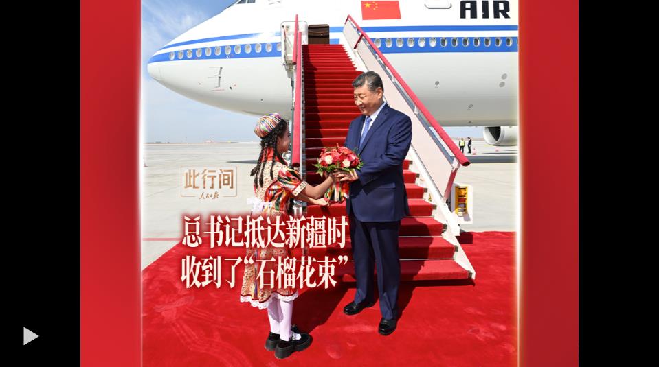 習(xí)近平率中央代表團(tuán)23日下午乘專(zhuān)機(jī)抵達(dá)烏魯木齊,出席新疆維吾爾自治區(qū)成立70周年慶祝活動(dòng),新疆各族群眾在機(jī)場(chǎng)熱烈歡迎。總書(shū)記收到的花束里,裝點(diǎn)了美麗的石榴。如今,“石榴籽”的妙喻為人熟知,民族團(tuán)結(jié)觀念深入人心。