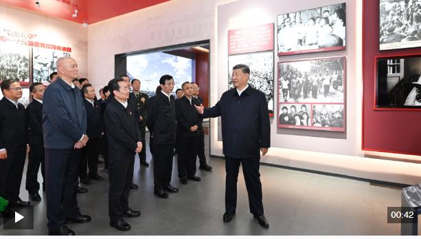 24日上午,習近平總書記在烏魯木齊文化中心展覽館參觀新疆維吾爾自治區成立70周年主題成就展。該展覽全景展現了70年來在中國共產黨堅強領導下、在全國各地大力支援下,新疆各族人民團結一心、艱苦奮斗、頑強拼搏取得的輝煌成就。