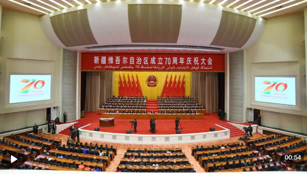 25日上午,習近平總書記在烏魯木齊市出席新疆維吾爾自治區成立70周年慶祝大會,同新疆各族各界干部群眾代表一道,熱烈慶祝新疆維吾爾自治區成立70周年。