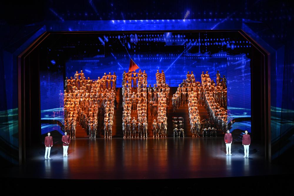 24日的文藝晚會《美麗新疆》中,創意詩舞畫《時代交響》,以絢麗變幻的聲光電,生動描繪天山南北的日新月異。