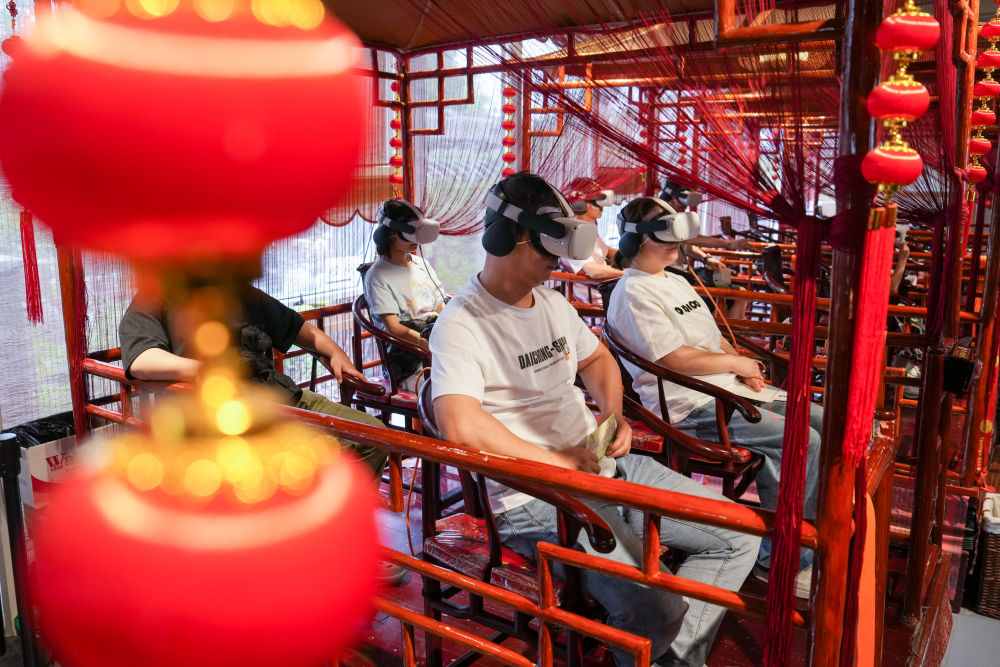 2025年5月18日,游客在蘇州拙政園體驗(yàn)VR漫游。當(dāng)?shù)乩脭?shù)字化手段,創(chuàng)造“數(shù)字云游”VR場(chǎng)景,打造“云游拙政園”“獅林園宇宙”“留園虛擬元宇宙”等項(xiàng)目,營(yíng)造真實(shí)可感的虛擬空間,讓觀眾沉浸式感受蘇州園林的獨(dú)特魅力。近年來(lái),蘇州不斷推進(jìn)“數(shù)字園林”建設(shè),在園林整體數(shù)字建模、園林要素?cái)?shù)據(jù)庫(kù)建設(shè)、園林“元宇宙”應(yīng)用場(chǎng)景開(kāi)發(fā)等方面進(jìn)行探索,加快推動(dòng)“數(shù)字園林”成果全民共享。