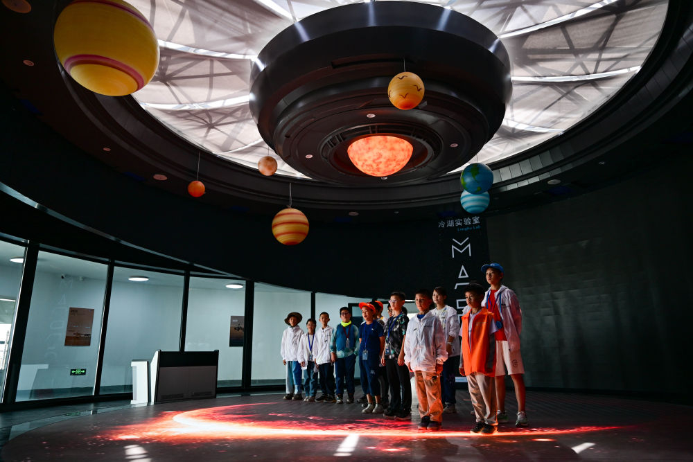 2025年7月29日,參加暑期研學(xué)的小朋友在青海省海西蒙古族藏族自治州冷湖鎮(zhèn)“冷湖實(shí)驗(yàn)室”學(xué)習(xí)天文知識(shí)。冷湖鎮(zhèn)曾是因石油而興、又因油盡而沉寂的工業(yè)遺址小鎮(zhèn)。然而,得天獨(dú)厚的地理?xiàng)l件,讓冷湖鎮(zhèn)成為理想的觀星地。近年來(lái),當(dāng)?shù)匕l(fā)展科幻特色文旅,讓戈壁小鎮(zhèn)煥發(fā)新的生機(jī)。冷湖天文觀測(cè)基地引進(jìn)十余家科研單位的數(shù)十臺(tái)望遠(yuǎn)鏡,依托天文資源和戈壁奇景,打造火星實(shí)驗(yàn)室、黑獨(dú)山等“出圈”地標(biāo)。連續(xù)舉辦多屆的“冷湖科幻文學(xué)獎(jiǎng)”,更讓這片土地成為科幻創(chuàng)作的新高地。冷湖鎮(zhèn)以科幻點(diǎn)亮文旅新場(chǎng)景,也為中國(guó)西北工業(yè)小鎮(zhèn)的轉(zhuǎn)型探索出一條充滿(mǎn)想象力的新路徑。