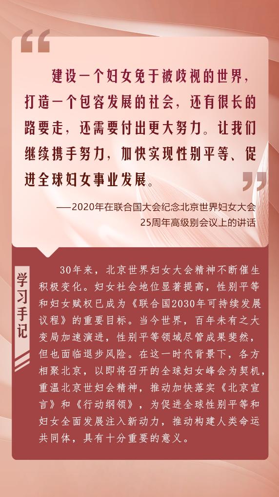 在全球婦女峰會(huì)即將舉行之際,我們重溫習(xí)近平總書記的重要論述,共同展望婦女發(fā)展的美好未來,期待全球婦女事業(yè)發(fā)展譜寫新的絢爛篇章。