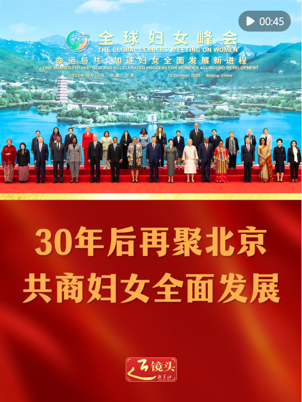 10月13日上午,國(guó)家主席習(xí)近平出席全球婦女峰會(huì)開幕式并發(fā)表主旨講話。1995年秋,北京世界婦女大會(huì)召開,樹立起全球婦女事業(yè)發(fā)展的一座里程碑。30年后,在這收獲的季節(jié),中國(guó)同聯(lián)合國(guó)婦女署在北京合作舉辦全球婦女峰會(huì),傳承弘揚(yáng)北京世婦會(huì)精神,為加速婦女全面發(fā)展新進(jìn)程譜寫新篇。