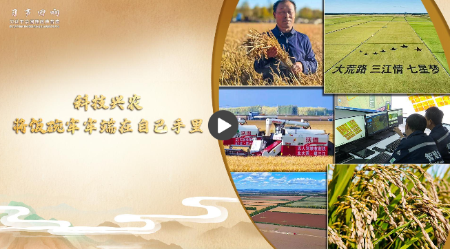 2018年9月25日,正在黑龍江省考察的習近平總書記來到七星農場北大荒精準農業農機中心。他走進稻田,拿起一把稻穗,看谷粒、觀成色。總書記指出,中國人要把飯碗端在自己手里,而且要裝自己的糧食。他囑托北大荒人,農業要振興,就要插上科技的翅膀。