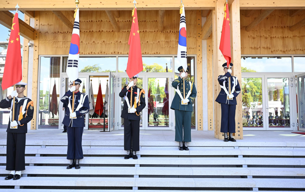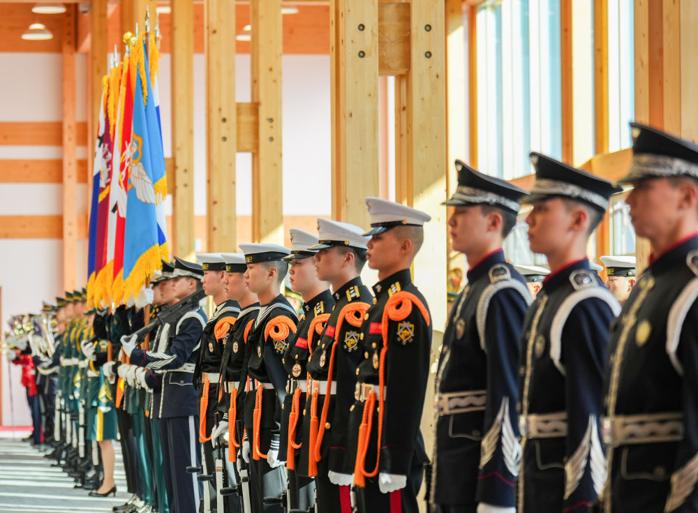當地時間11月1日下午,國家主席習近平出席韓國總統李在明舉行的歡迎儀式。
