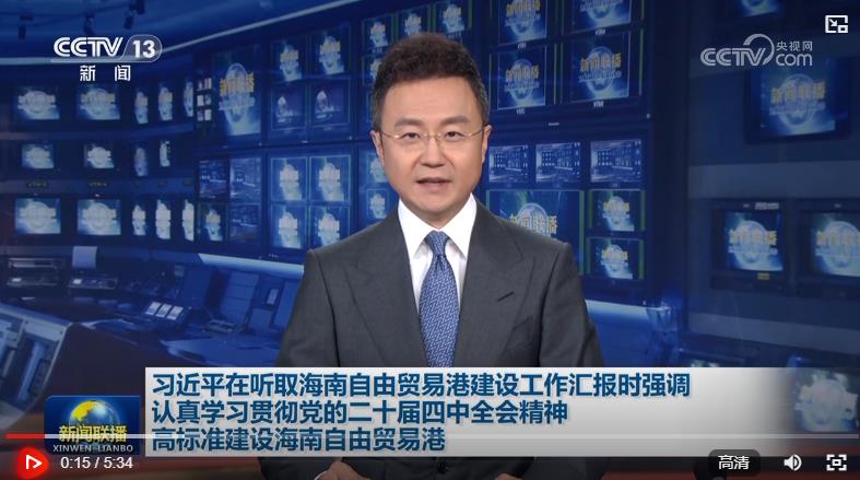 中共中央總書記、國家主席、中央軍委主席習近平在聽取海南自由貿易港建設工作匯報時強調,建設海南自由貿易港,是黨中央著眼新時代全面深化改革開放作出的重大決策。要認真學習貫徹黨的二十屆四中全會精神,在黨中央集中統一領導下,各級各有關方面密切協作、主動作為,通過持續努力,全面實現海南自由貿易港建設目標。