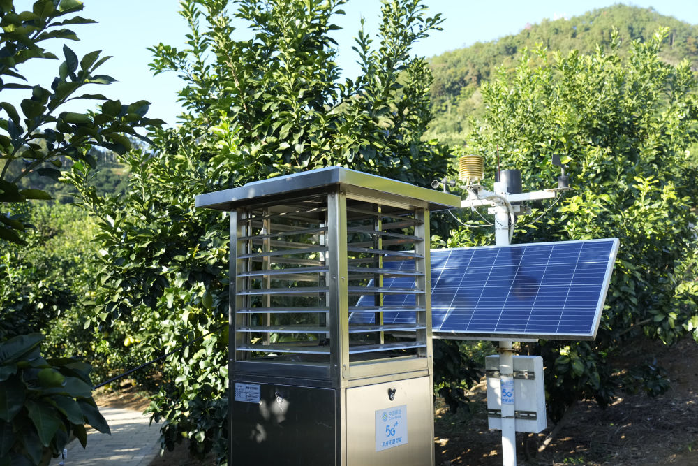 這是11月7日在梅州南福金柚種植基地拍攝的智能蟲情測報燈。在智慧農業數字化平臺的幫助下,柚農可通過手機實時監測分析土壤、氣候、溫度、濕度等重要指標。
