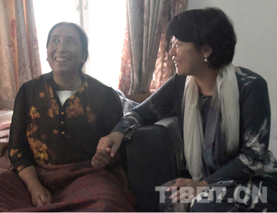 這是幫助強巴卓嘎聯系治病的北京安貞醫院小兒心臟病專家顧虹(右)看望離京返藏前的強巴卓嘎(左)時,與她相互交流,回憶治病過程。(唐召明2019年9月30日攝)