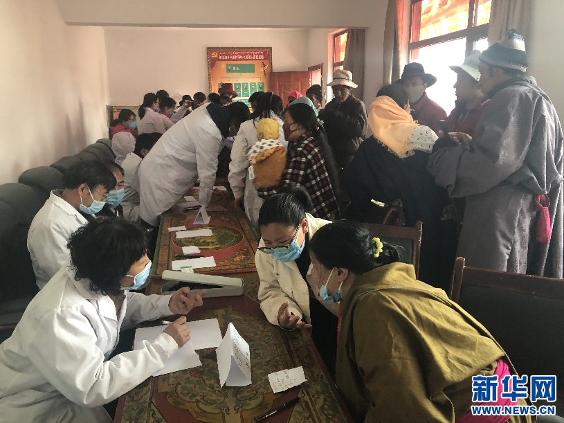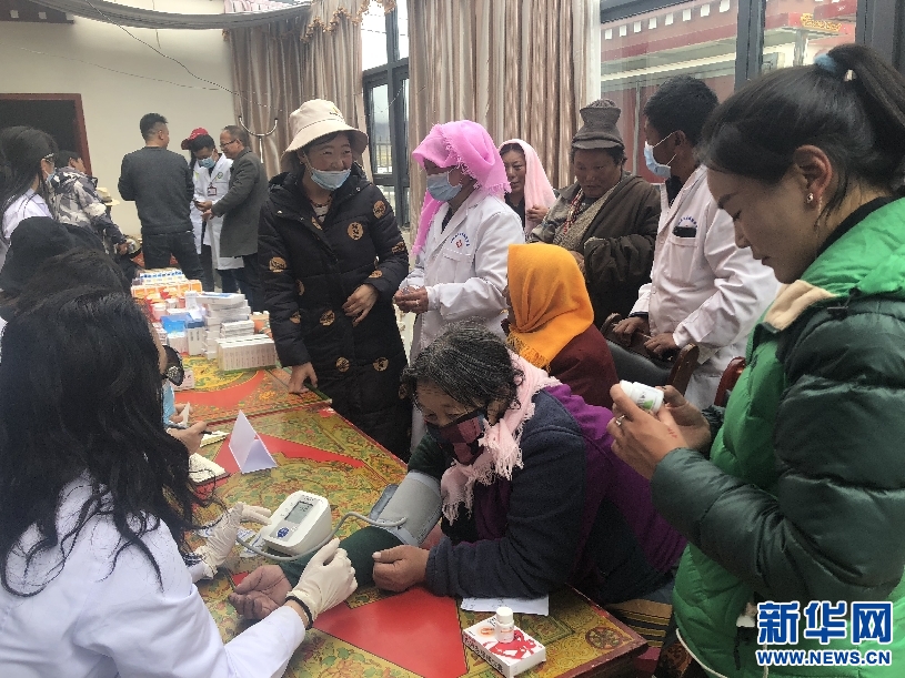 援藏醫生為村民量血壓 新華網發(王宇翀攝)