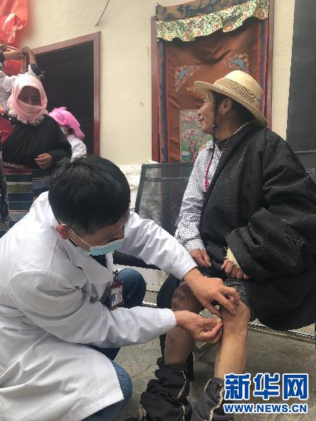 援藏醫生為貢布云旦針灸治腿 新華網發 (王宇翀攝)