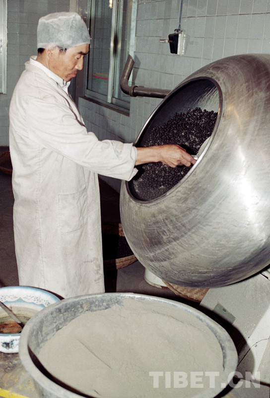 這是西藏昌都地區(qū)利民藏藥廠工人正在生產(chǎn)藏藥。該藏藥廠曾被人事部和國家醫(yī)藥管理局授予全國醫(yī)藥系統(tǒng)先進(jìn)單位稱號(hào)(唐召明1998年攝)