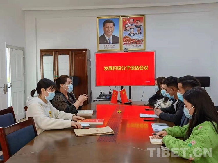 圖為索珍作為老黨員在醫院內與入黨積極分子談話