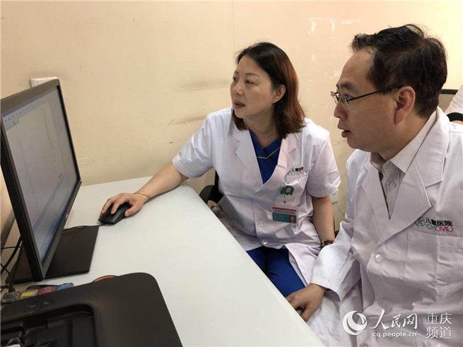 重慶醫科大學附屬兒童醫院心電生理診斷中心,專家實時分析央措的心電圖報告。