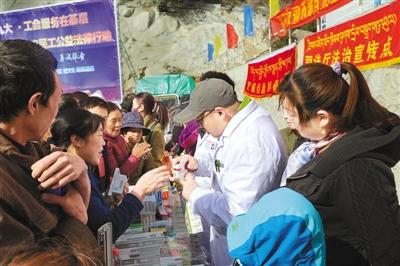 近日,西藏自治區總工會在拉林鐵路達嘎拉隧道施工現場,開展了以“學習貫徹十九大·工會服務在基層”為主題的服務職工系列活動。活動現場,西藏自治區司法廳法律援助中心律師以“法律講堂”的形式與職工互動;西藏自治區人民醫院、西藏自治區藏醫院醫生為職工義診并發放了藥品;遠大農民工藝術團、朗縣民間藝術團表演了文藝節目。
