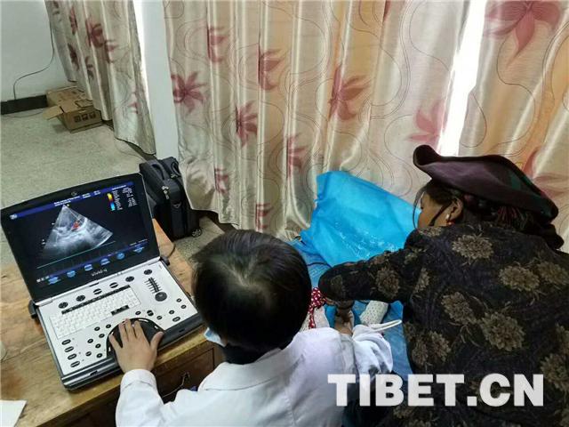 圖為北京安貞醫院醫生為拉孜縣先心病疑似患兒確篩。