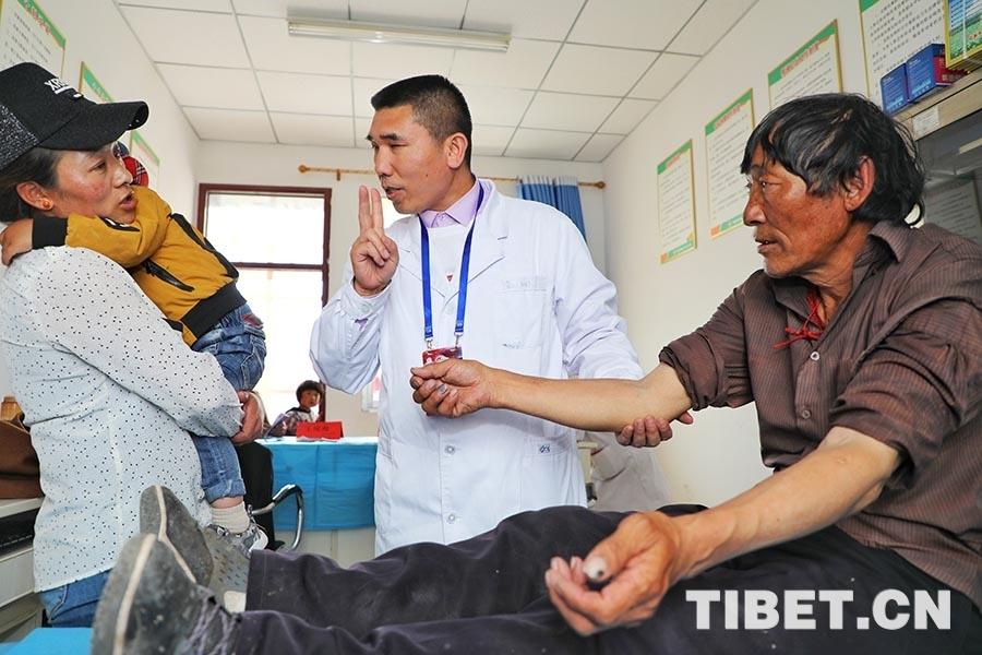 圖為王現海在歐拉秀瑪鄉衛生院為藏族同胞義診。