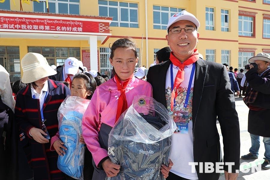 7月11日,王現海與隨行團隊專家到瑪曲縣第一小學參加學生們的畢業典禮,并向學生代表送上學習用品。