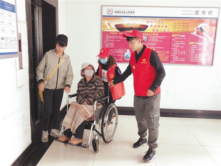 圖為在西藏自治區人民醫院,南京醫科大學的志愿者在服務患者。記者 央金 攝