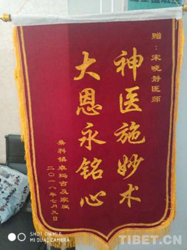 圖為患者家庭贈予宋曉靜的錦旗 圖片由夏河縣醫院提供