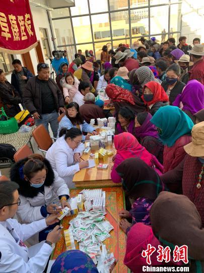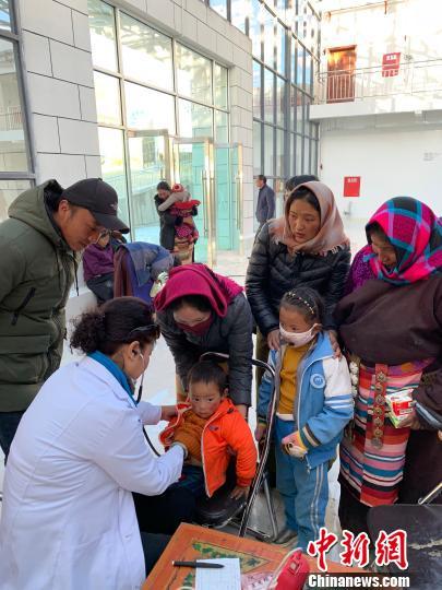 圖為西藏阜康醫院派出醫療團隊到嘉黎縣夏瑪鄉衛生院為當地農牧民義診。阜康醫院供圖
