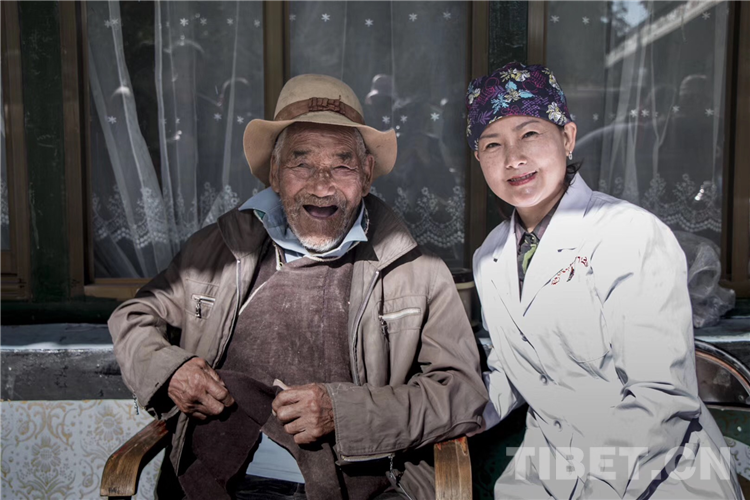 圖為援藏醫生李毅萍與老黨員索朗平措 攝影:胡德
